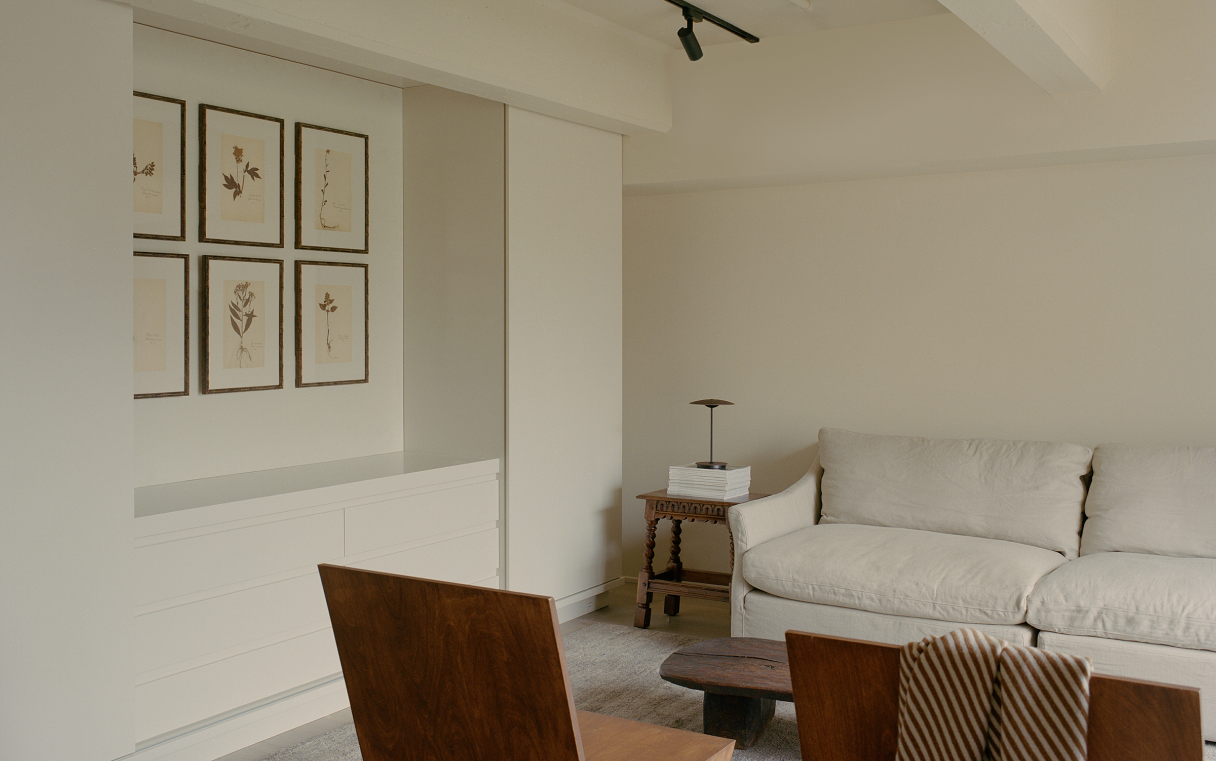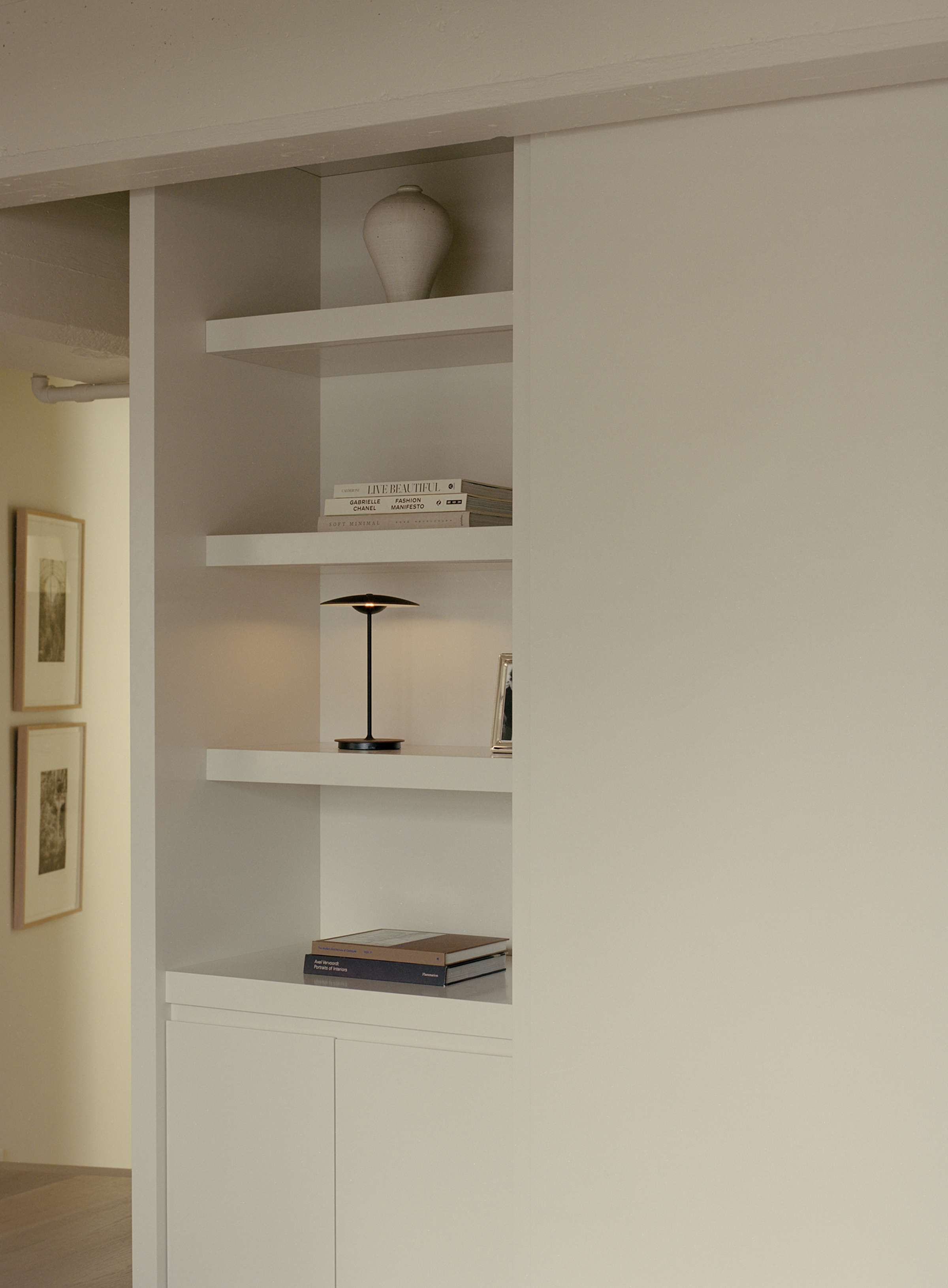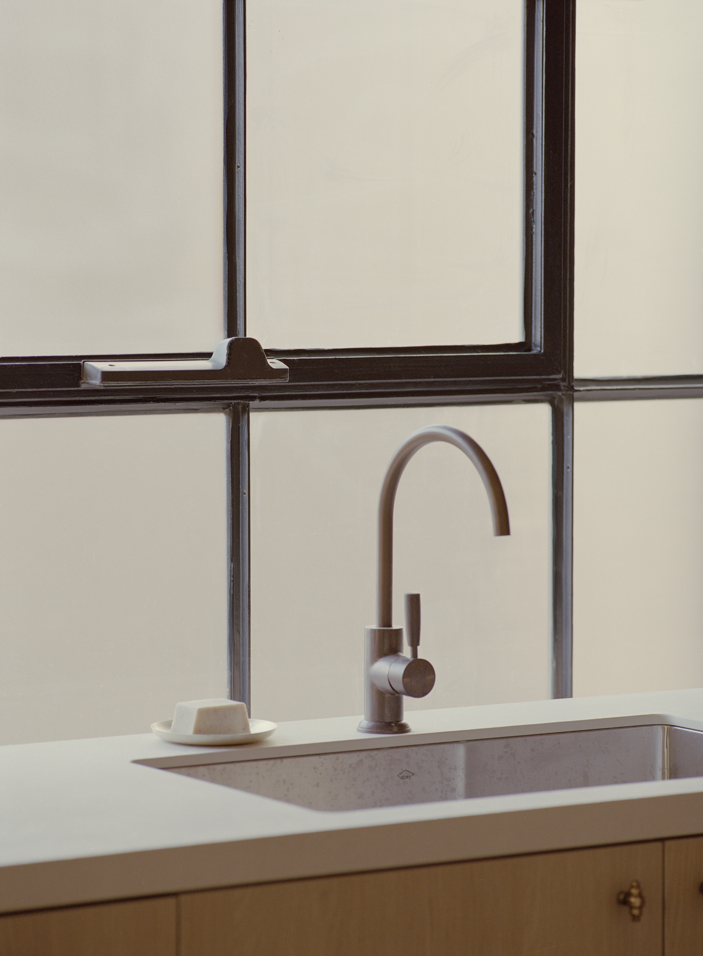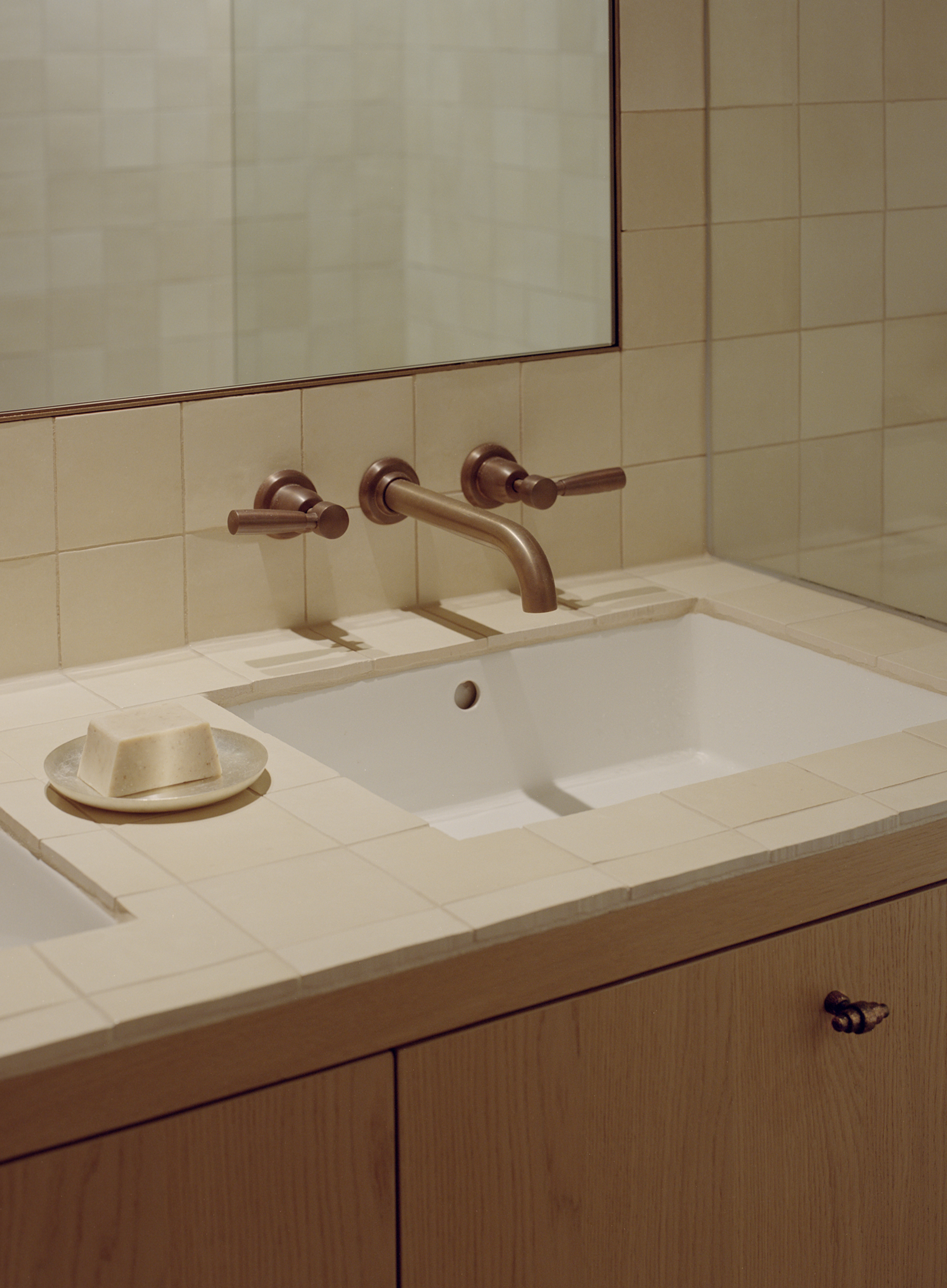 Fitzroy refines a 75 sqm apartment within the historic MacRobertson Chocolate Factory on Rose Street for a young family of three. The renovation reshapes the contained layout to prioritise warmth and comfort. Warm earth tones and tactile finishes sit naturally against the factory’s brickwork and steel-framed windows, softening its industrial character. Oak floors and light timber cabinetry add warmth, punctuated by the patina of aged brass tapware and textured tiles.