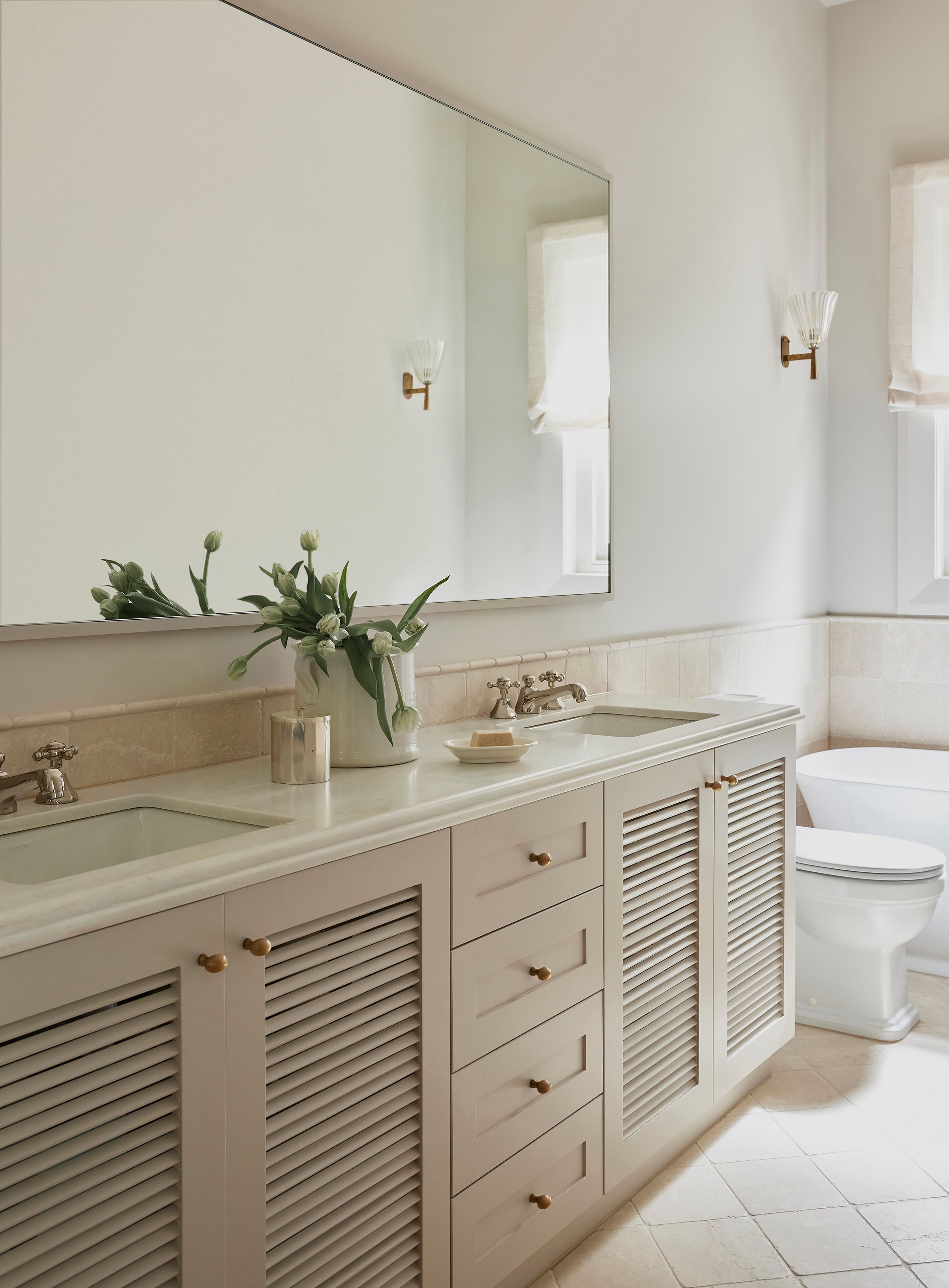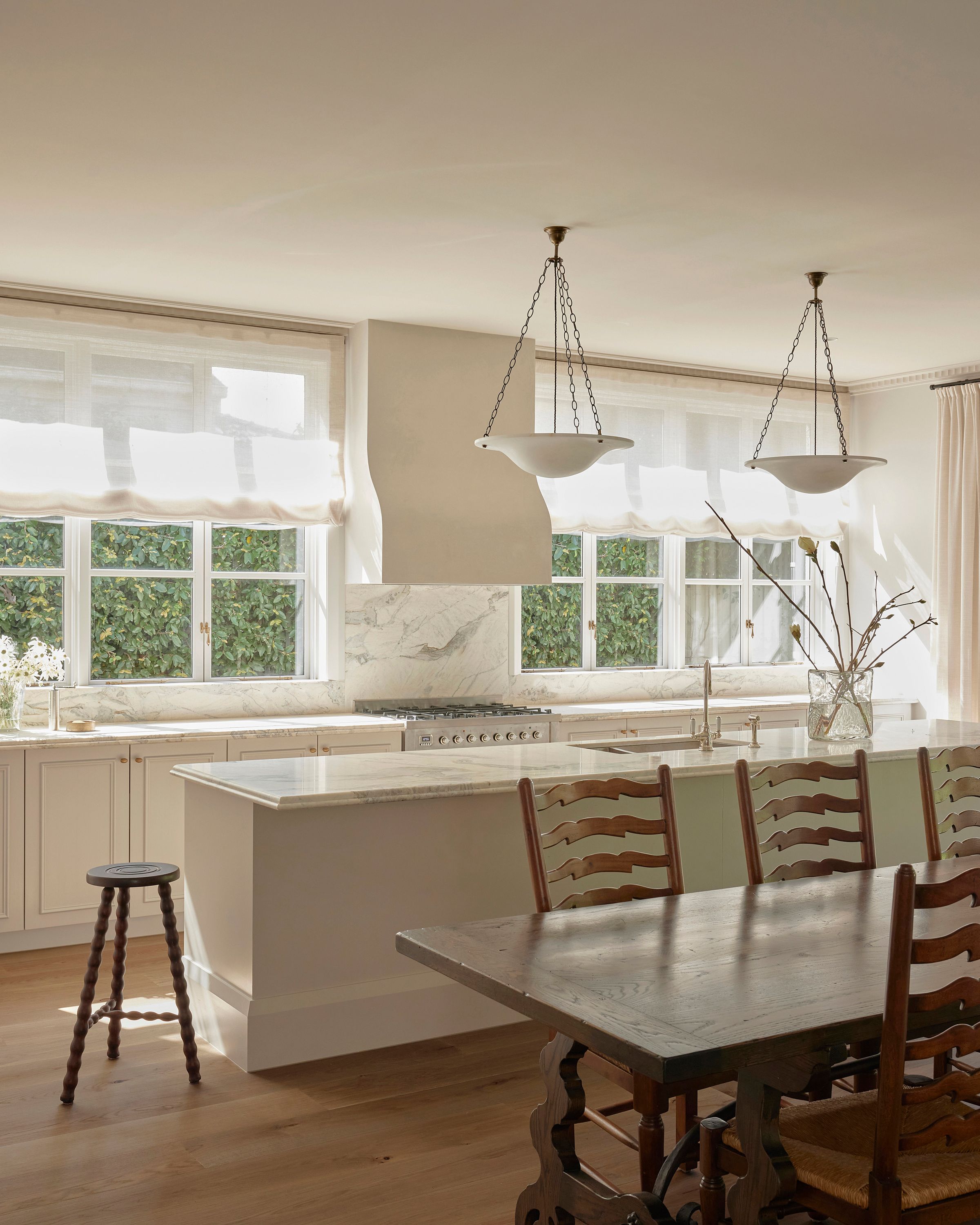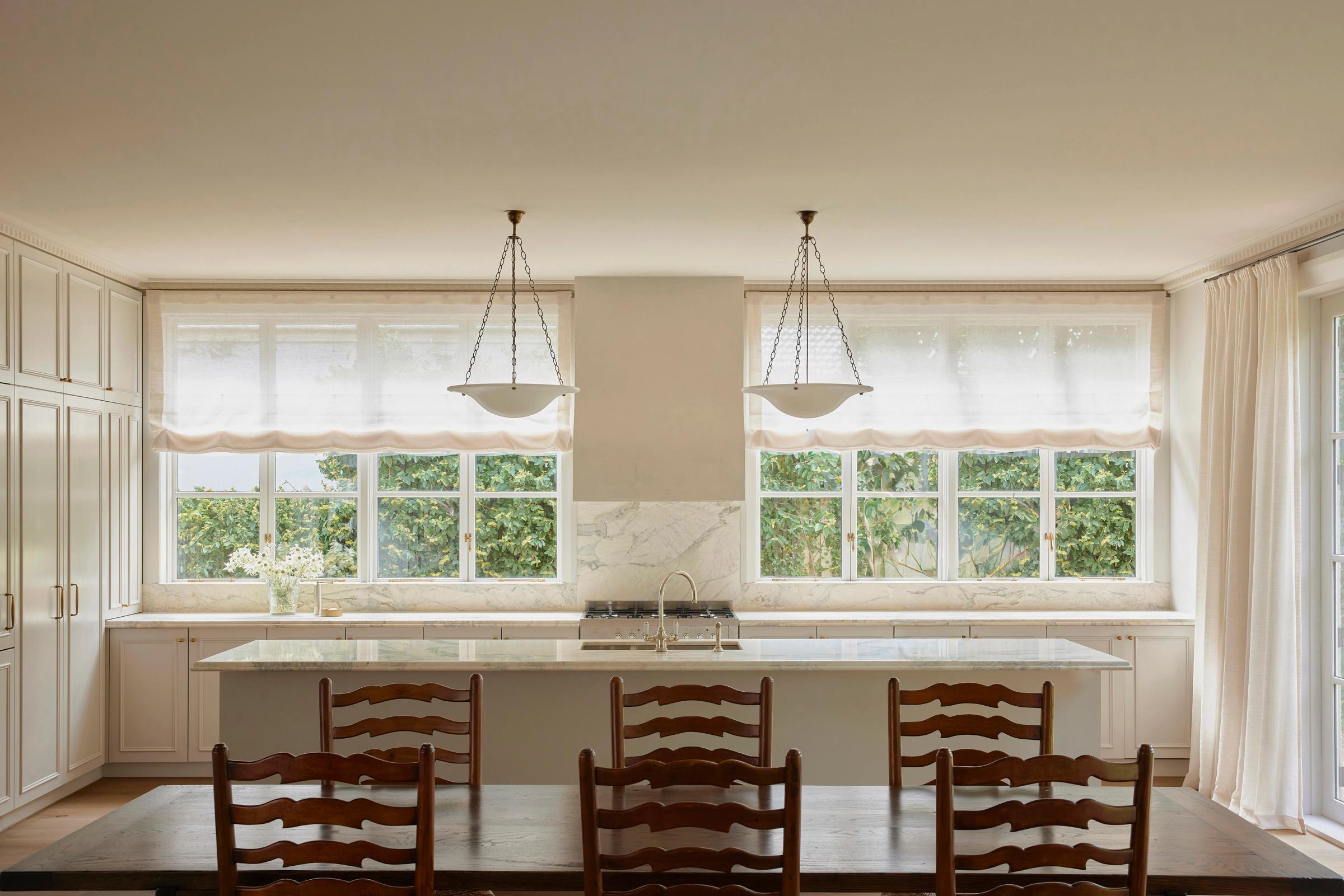 Kooyong gives new life to a 1905 Federation Arts and Crafts home for a young family of four, preserving its architectural gravity while introducing light and openness. Set back from a busy road on a leafy block, the 250 sqm brick house holds presence through its thick stucco, low roof, twisted pillars and timber detailing. The rear was expanded with French windows and doors which draw the garden into daily life. Consistent tonality unifies existing elements with new additions, including custom limestone fireplaces, reinstated cornices and finely detailed joinery, each informed by the home’s immaculately preserved heritage character. This approach heightens the home’s historic charm while providing a contemporary foundation for the family to layer with their heirlooms and stories.