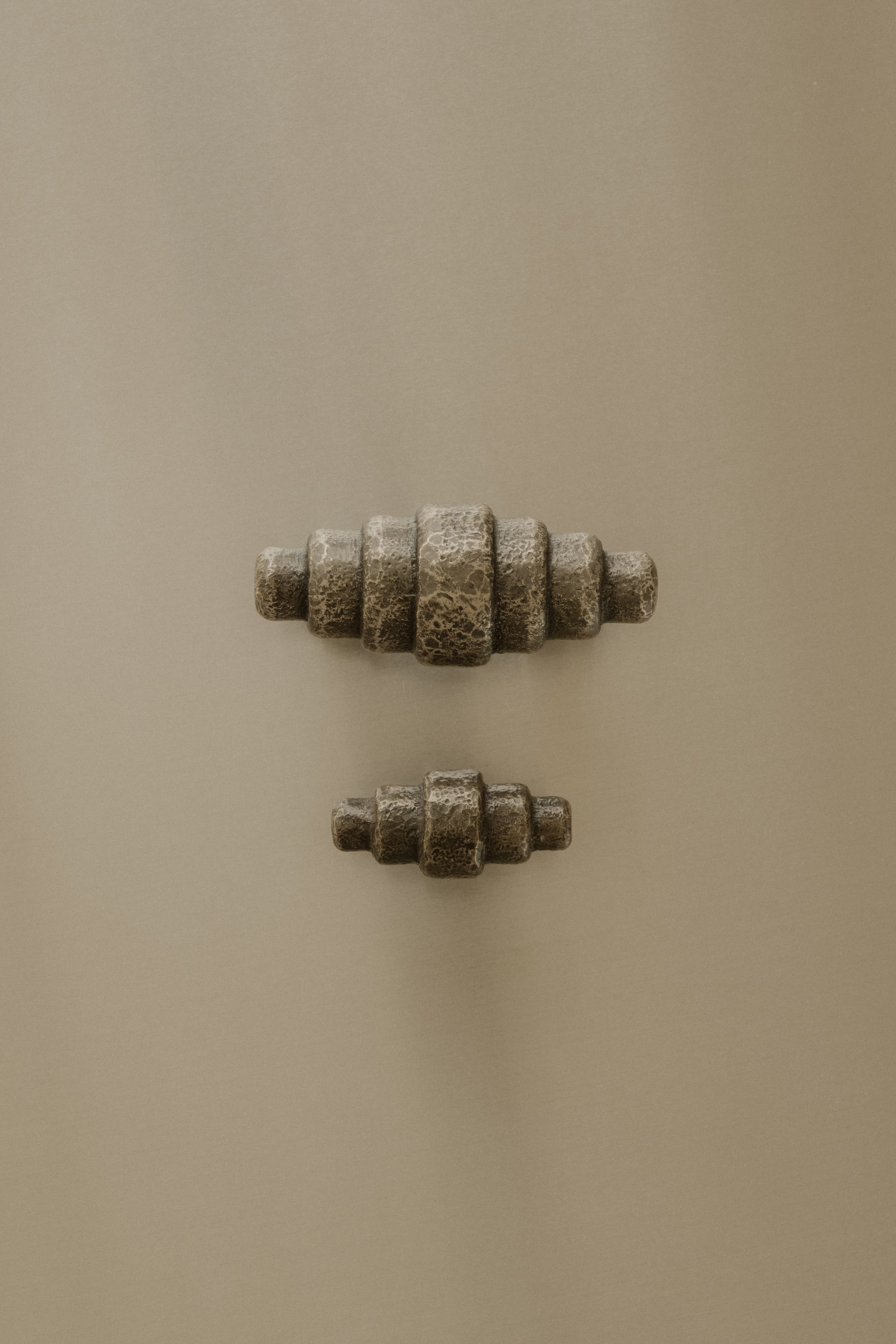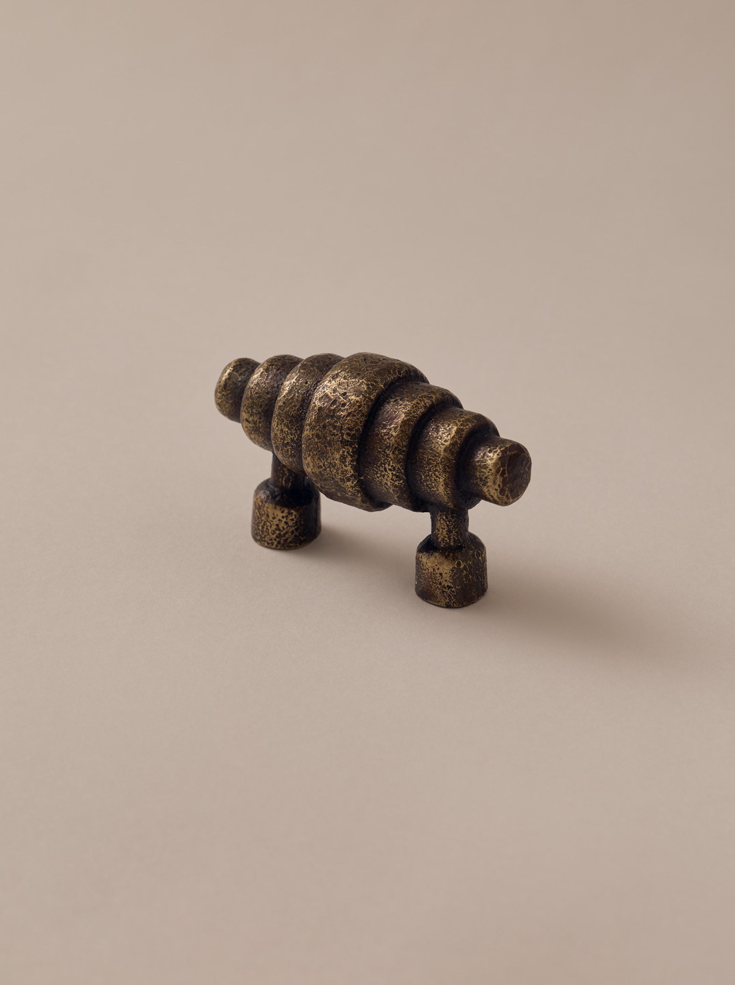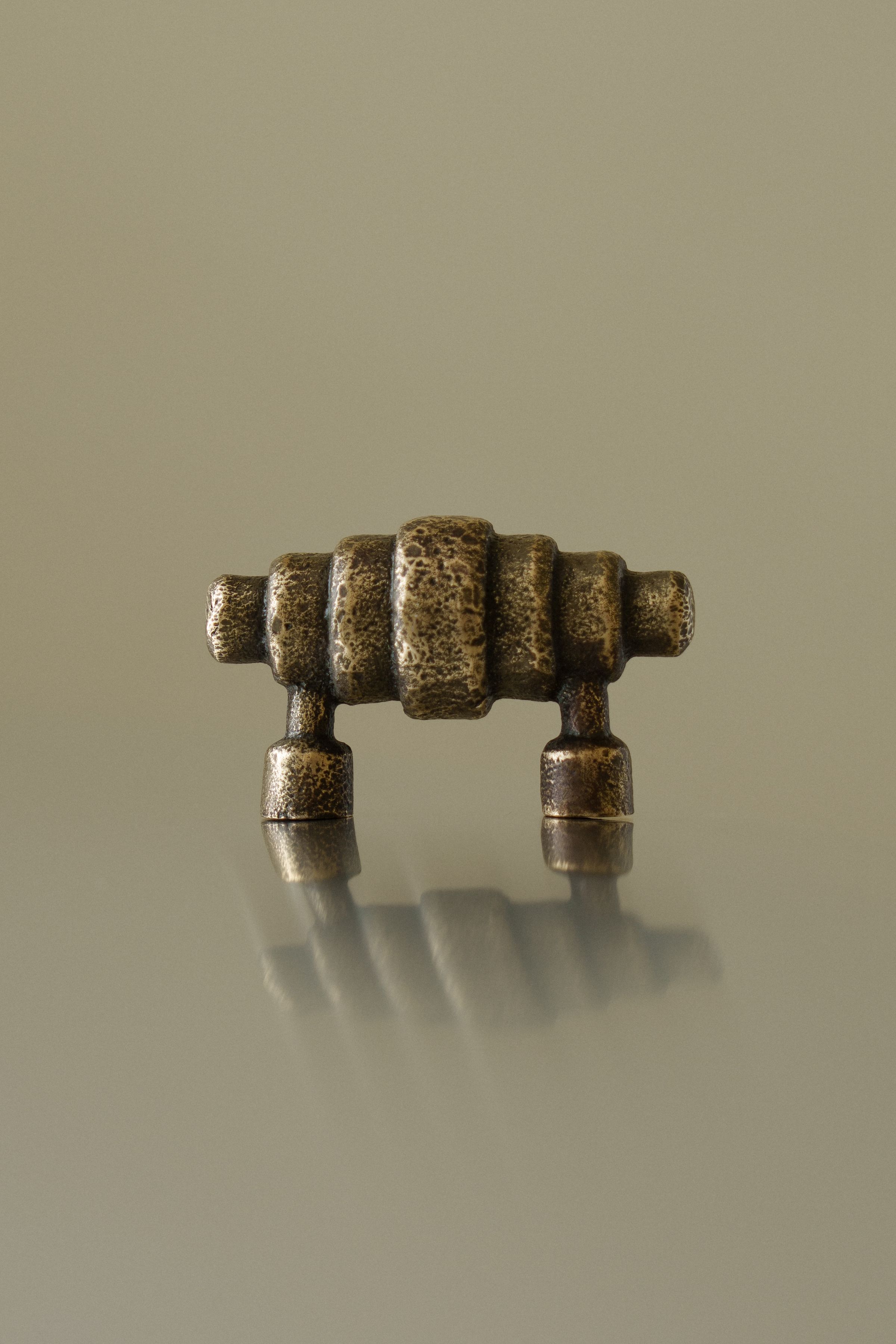Each piece begins as a timber carving, then moves through wax casting before being hand poured in bronze. Subtle variations in texture and colour arise through this process, and the surface develops a natural patina with time, which can be refreshed through polishing.